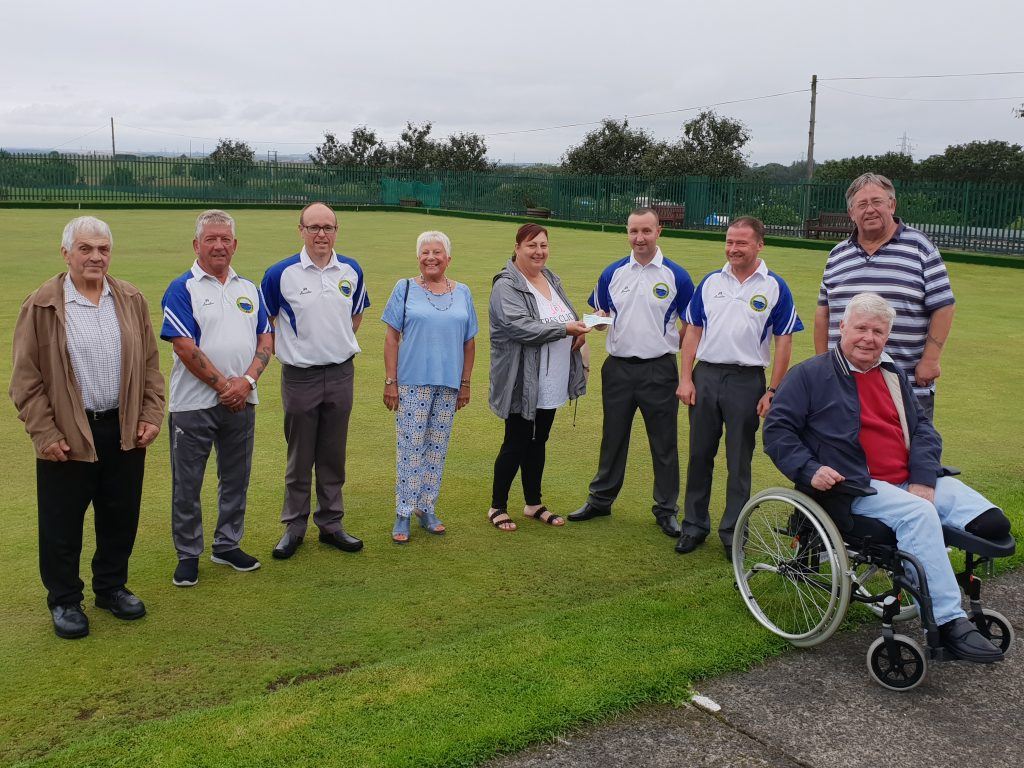 From left to right; Cllr Boon, Jacky Taylor, Alan Stewart, Cllr Cholerton, Cllr Burns, Lee Birch, Billy Waters, Geoff Thompson and Club Treasurer, Derek Burn.