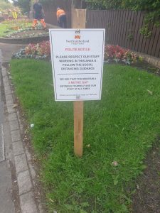 If you are passing the crew at work please respect social distancing measures for your own and the crews safety.