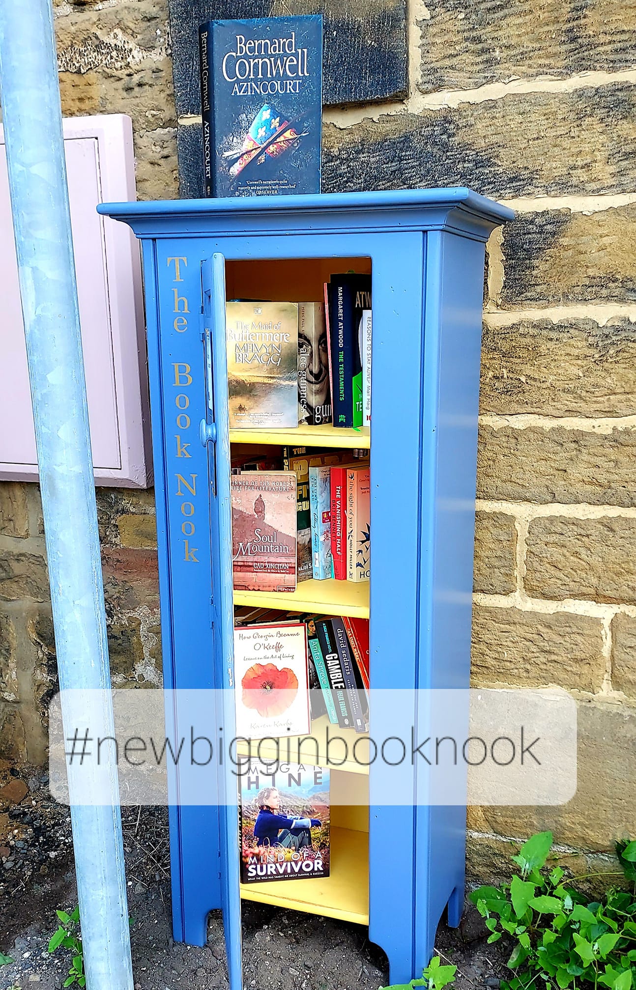 Ami, Angie and Safron were inspired by similar schemes in Craster and Beadnell. Working together they created a wonderful Newbiggin Book Nook; where anyone can take a book or put a book in.