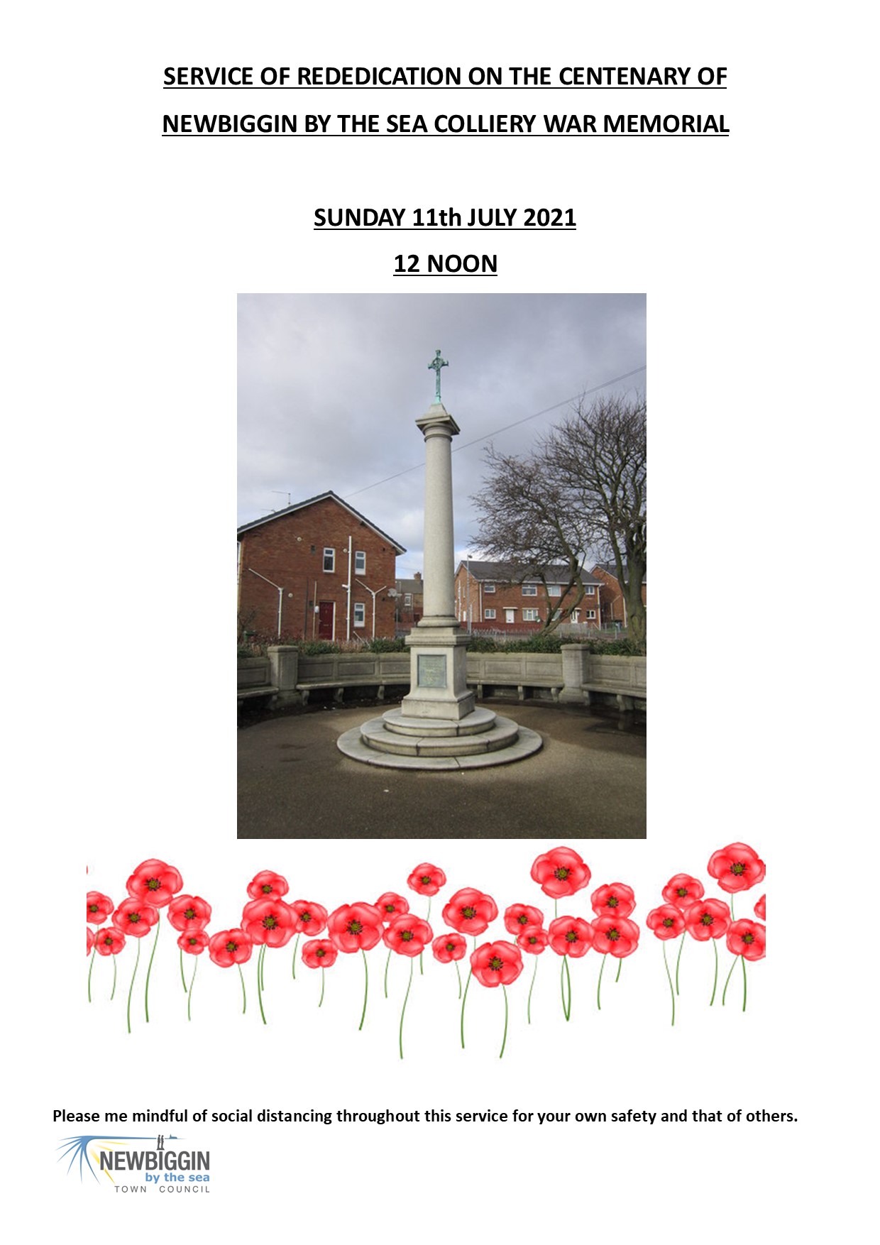 Service of Rededication on the Centenary of Newbiggin by the Sea Colliery War Memorial