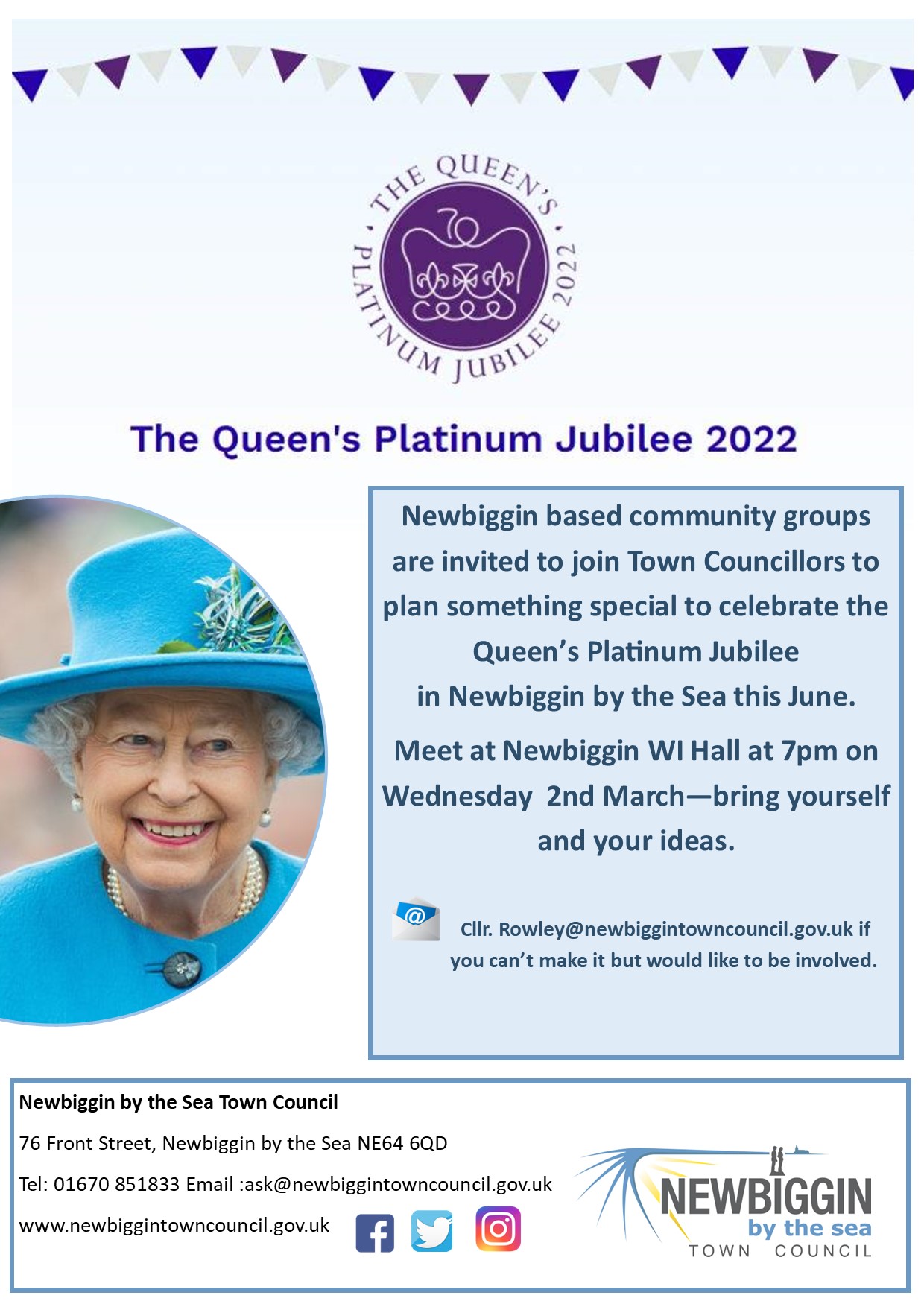 At a meeting of the Town Council held Monday 21st February it was unanimously agreed to create a working group to plan something special with the community to celebrate the Queen’s Platinum Jubilee in June this year. The working group will consist of Councillors Fiona Rowley, Alison Sutherland and Ami Wootton.
