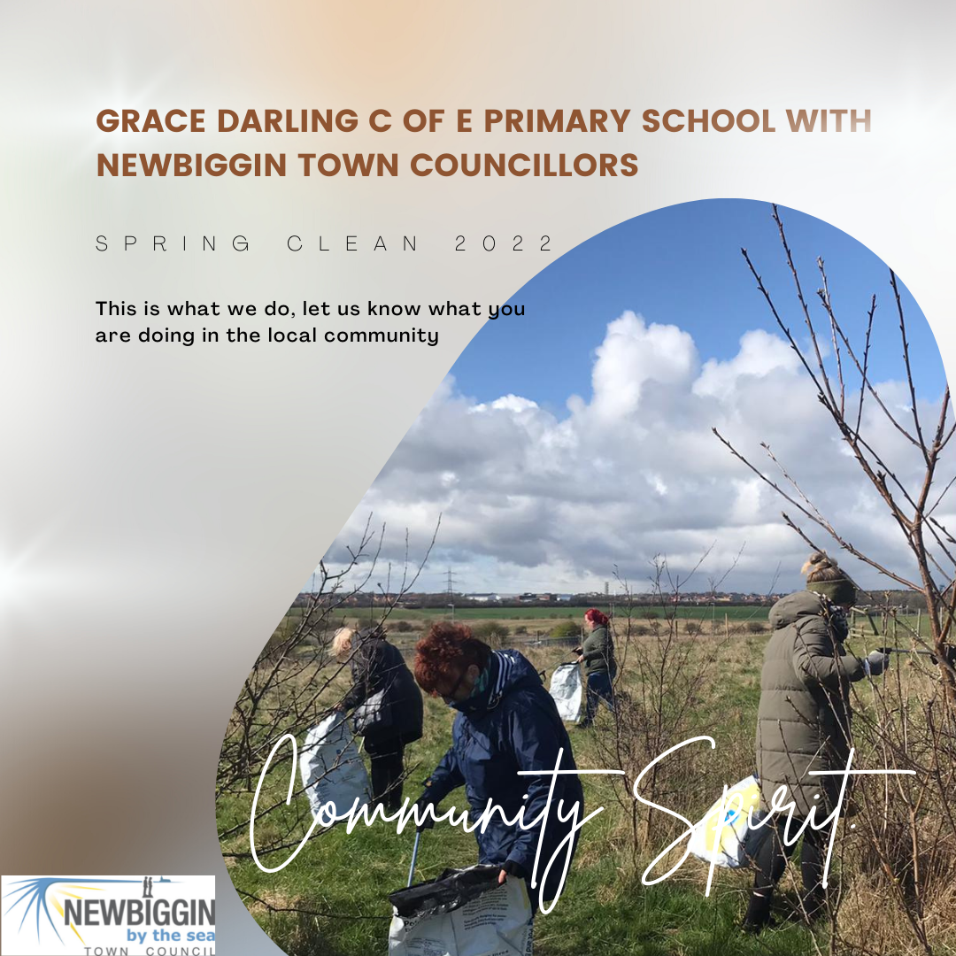 Grace Darling C of E Primary School with Newbiggin Town Mayor and Councillors – Spring Clean 2022