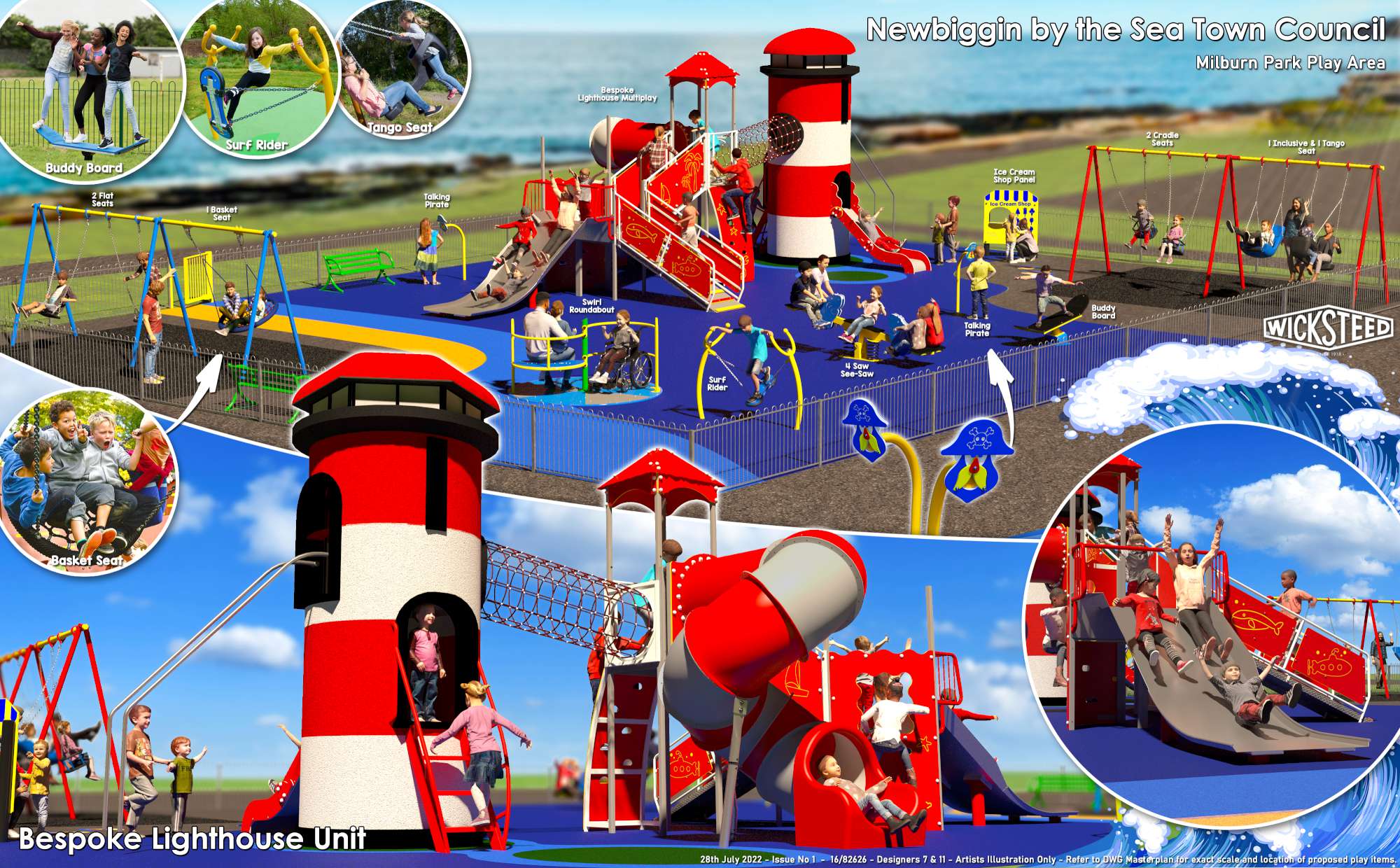 Newbiggin by the Sea Town Council has appointed Wicksteed Leisure to deliver the new play area at Milburn Park. This exciting £150,000 project includes a contribution of £50,000 from Northumberland County Council, and £30,000 generously donated by a local landowner. Wicksteed Leisure is due to commence works in the new year with the play area expected to be complete by 31st March.