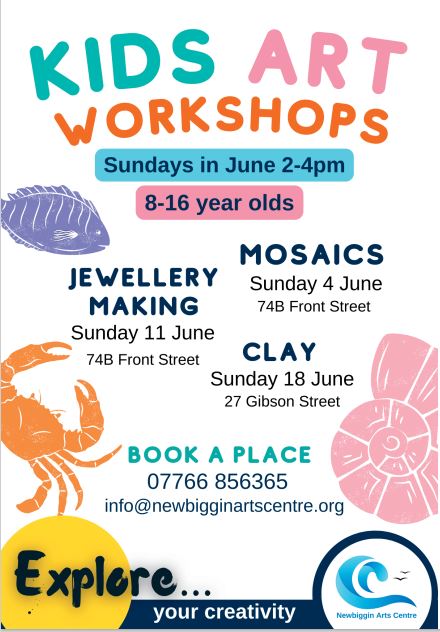 Kids art workshops on Sundays in June between 2-4pm. Book a place – details on flyer.
