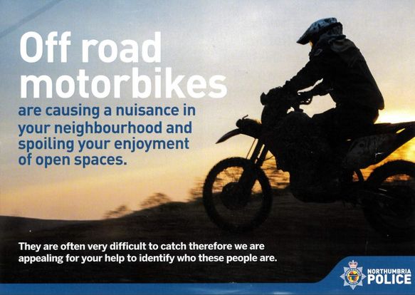 REMEMBER – As moving vehicles are difficult to catch, Northumbria Police very much rely on people power so if you have any information relating to the use of these vehicles, where they are being ridden, and who they are being ridden by please report it to Northumbria Police.