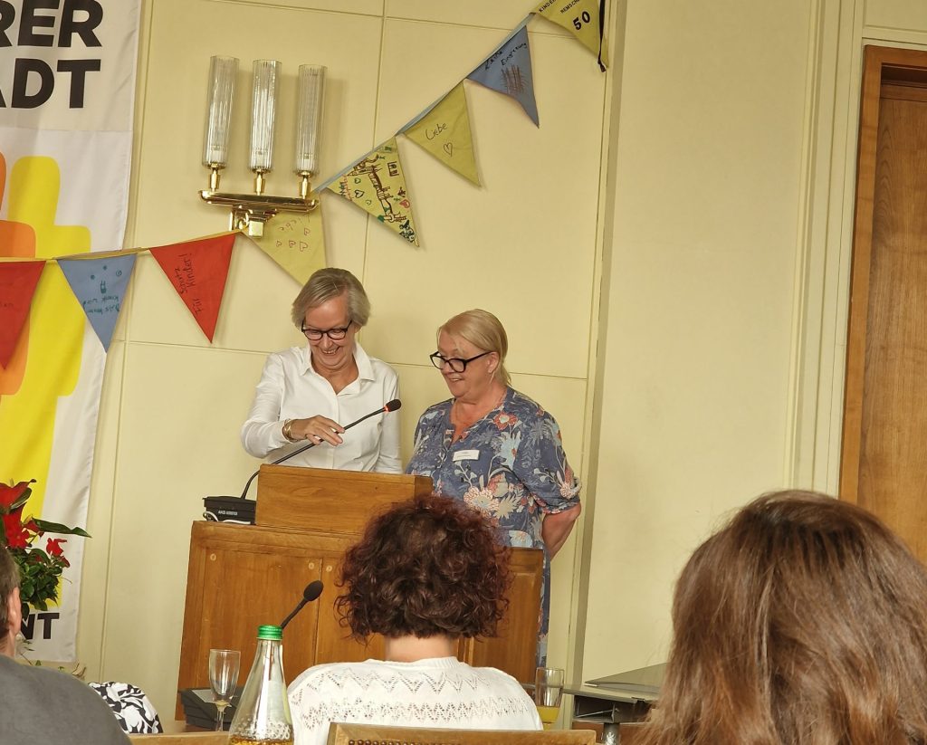 In a packed Town Hall of Stadt Remscheid on Sunday 3rd September we proudly watched our Mayor, Alison Sutherland, deliver a speech on behalf of the Town Council and the people of Newbiggin by the Sea, acknowledging the importance of the twinning partnership in continuing to provide alternative ways to engage and collaborate, and offer opportunities for learning, connecting, supporting and sharing in solidarity, now and for future generations. The speech was translated into German.