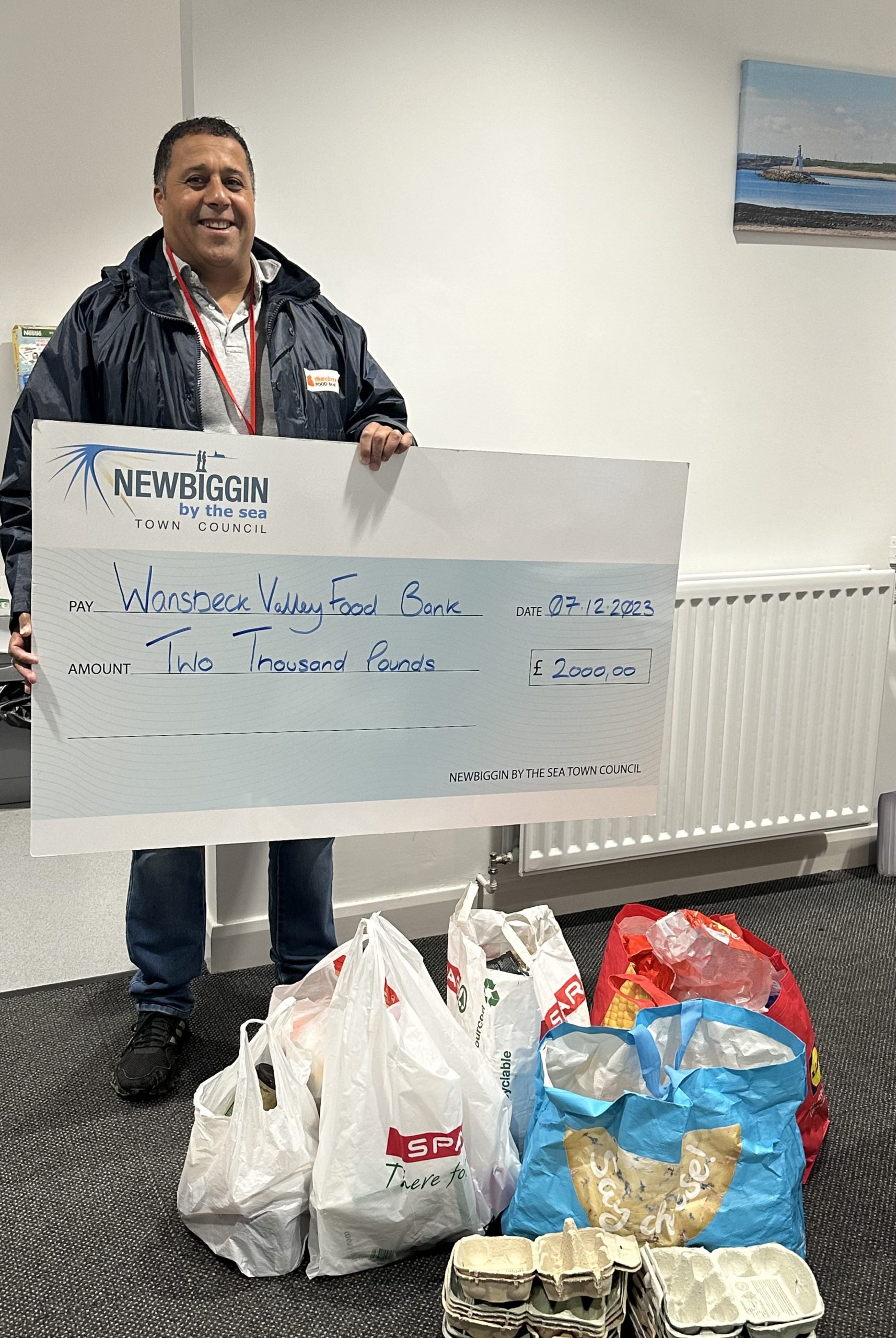 When Mark Facey, a volunteer from Wansbeck Valley Foodbank, popped into the Town Council office last week to collect the donation from the ‘Biggin Box’, we presented him with a £2000 donation from Newbiggin by the Sea Town Council to the Foodbank.