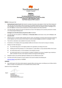 Front Street in Newbiggin by the Sea will be closed from Whitehouse Corner to Morrisons from 10.30am to 11.15am on Sunday 10th November, for the Newbiggin by the Sea Remembrance Day Parade and during the Service of Remembrance.