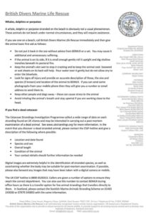British Divers Marine Life Rescue (BDMLR) : 01825 765546