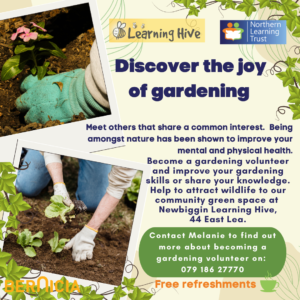 Newbiggin Learning Hive are seeking passionate volunteers to help nurture their community garden! Whether you’re a seasoned gardener or just starting out, this is the perfect opportunity to discover the joy of gardening, connect with like-minded individuals, and enhance your skills!