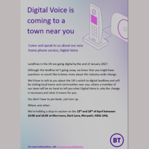 A series of drop-in sessions from BT will be happening across Northumberland in April to help residents with questions about the Digital Switchover.