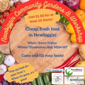 Don’t miss your chance to scoop up some amazing deals this afternoon at the Pop Up Food Shop at Newbiggin Community Gardens and Workshop at Elizabethan Hall!