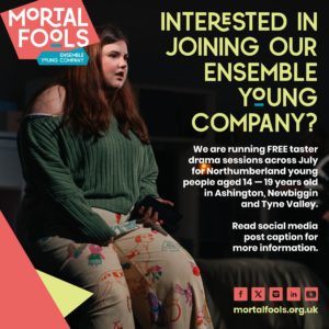 Check out the information from Mortal Fools below. In Newbiggin Sunday 13th July between 10am – 4:30pm at Newbiggin Sports & Community Hub.