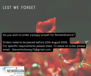If you or your organisation would like to order a wreath for this yearβs Remembrance Service, please contact Newbiggin Poppy Appeal Organiser, Steven Holloway.