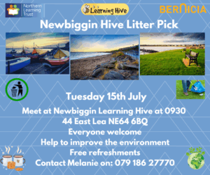 Newbiggin Learning Hive Litter Pick today Join Newbiggin Learning Hive for a community litter pick this morning!Meet at the Hive at 9:30am.Everyone’s welcome, and free refreshments will be provided.Let’s keep our town tidy!SHARE THIS Previous postNext postComments are closed.