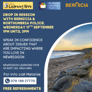 This is your chance to connect with Bernicia Group Officers and Northumbria Police in a friendly, relaxed environment. Whether you have concerns about community issues, safety, or just want to chat, they are here for you!
