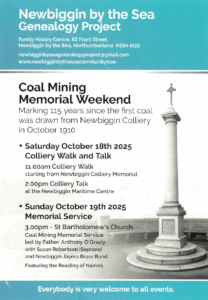 The Newbiggin by the Sea Genealogy Project have organised a Coal Mining Memorial Weekend!