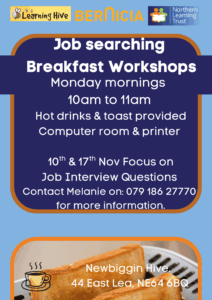 Join Newbiggin Learning Hive for the next two Job Searching Workshops coming up!