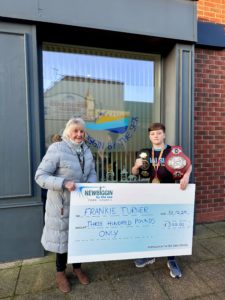 Cllr Gwen Woodman, Mayor of Newbiggin by the Sea, met with Frankie to present the cheque. Newbiggin Town Council wish him all the best in the year ahead and looks forward to seeing what Frankie accomplishes in his very bright future in the sport he loves.