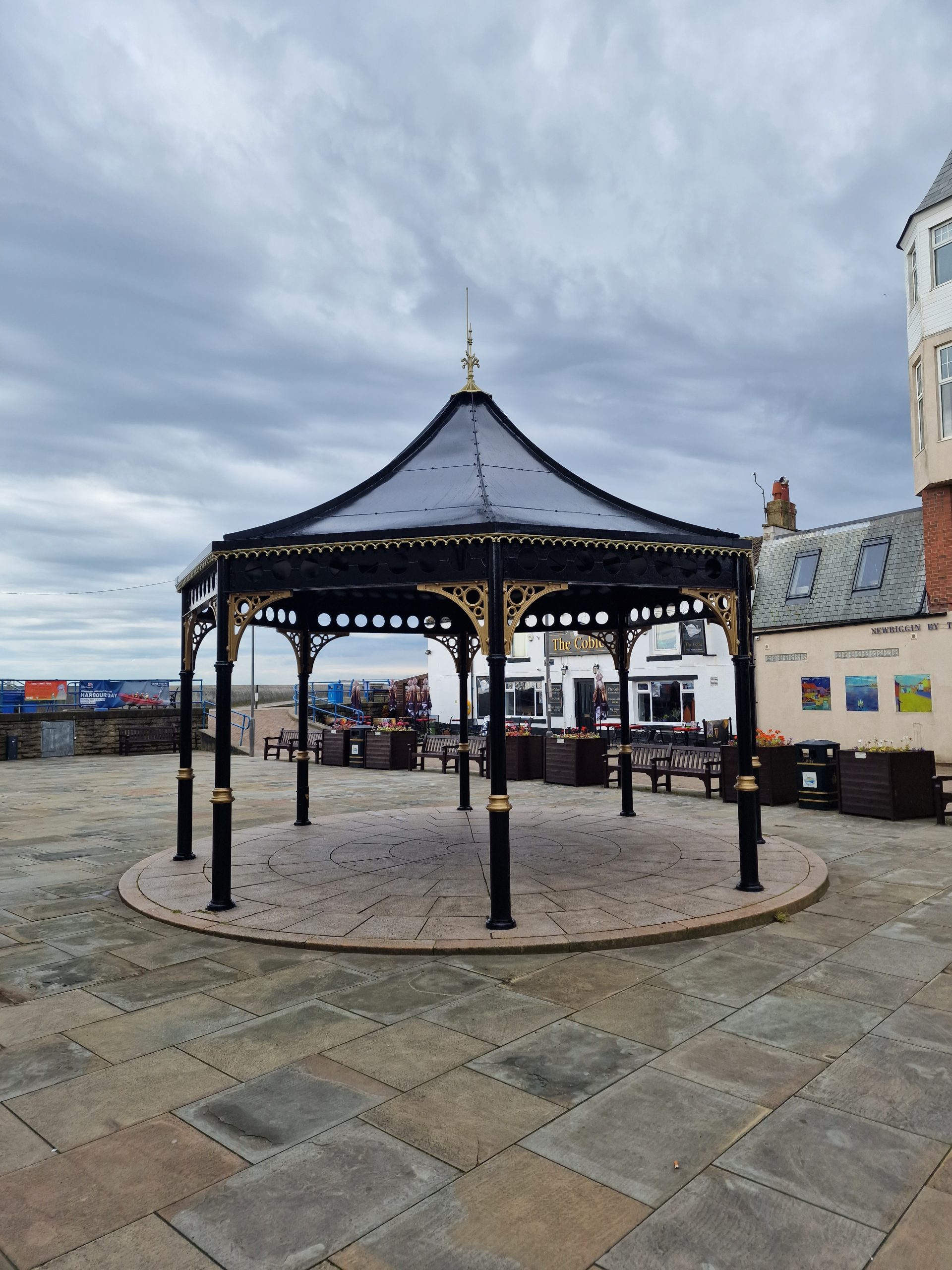 The current bandstand was installed in 1993 as part of a Northumbrian Water regeneration scheme to create the Quay Wall Piazza area after they built the sewerage treatment works site. It was officially opening by Jack Charlton. Over the years the bandstand has provided a performing space for many local bands and choirs to the enjoyment of residents and visitors and has been a focal point for many events.